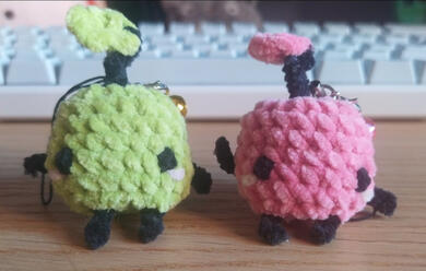 | Junimos del Stardew Valley!! ........... ★ 4 x 3 x 6 cm. 3'5€ /u ................... ★ Del color que quieras! Con llavero y cascabel a juego |